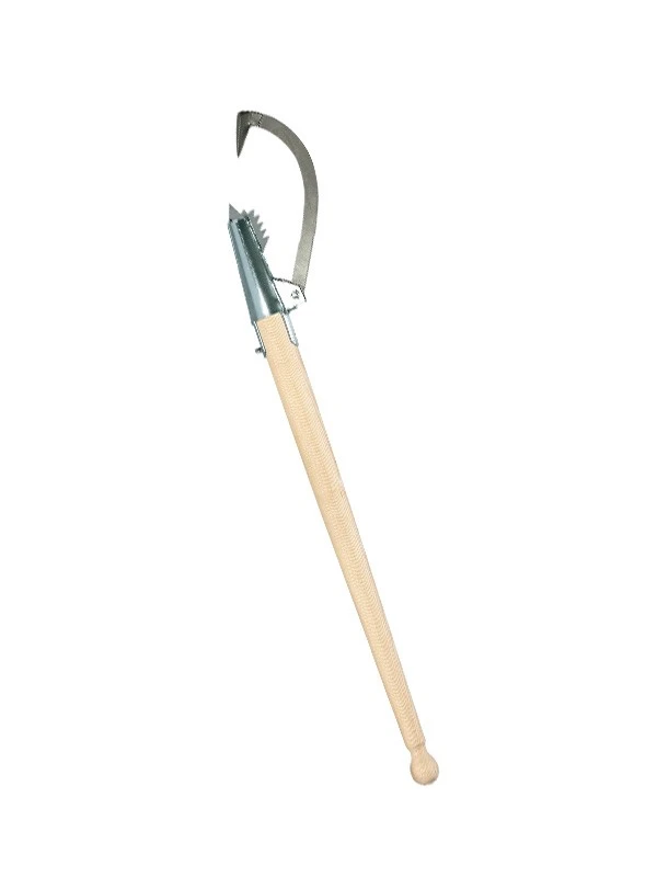 Kovaan käyttöön mitoitettu kääntökoukku. Sahamainen hammastus ja saranoitu koukku puree puuhun todella hyvin ja antaa hyvän pidon. Varsi saarnia.