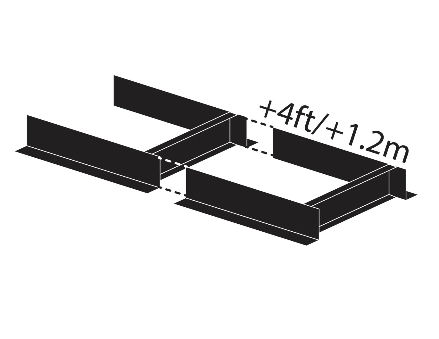 Kiinteä 1,2 metrin tukkipöydän pituusjatkos Norwood HD36 ja LM34 vannesahalaitoksille.