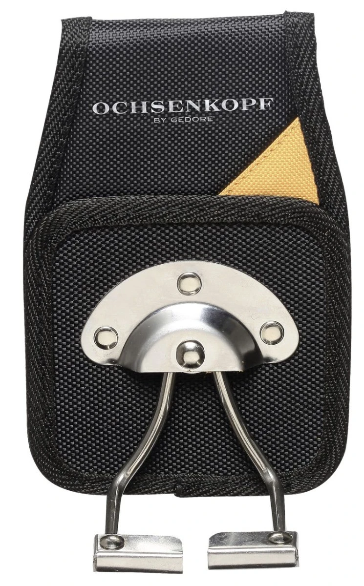 Pokaran säilytyskotelo vyölle. Vyölenkki, josta kotelon voi pujottaa varustevyölle.