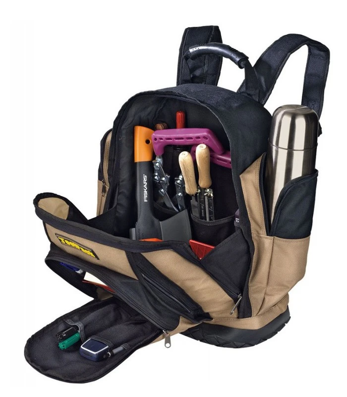 Laadukas reppu työkalujen ja tarvikkeiden kuljetukseen. Kulutusta ja vettä kestävä kumipohja. Useita ulko- ja sisätaskuja.